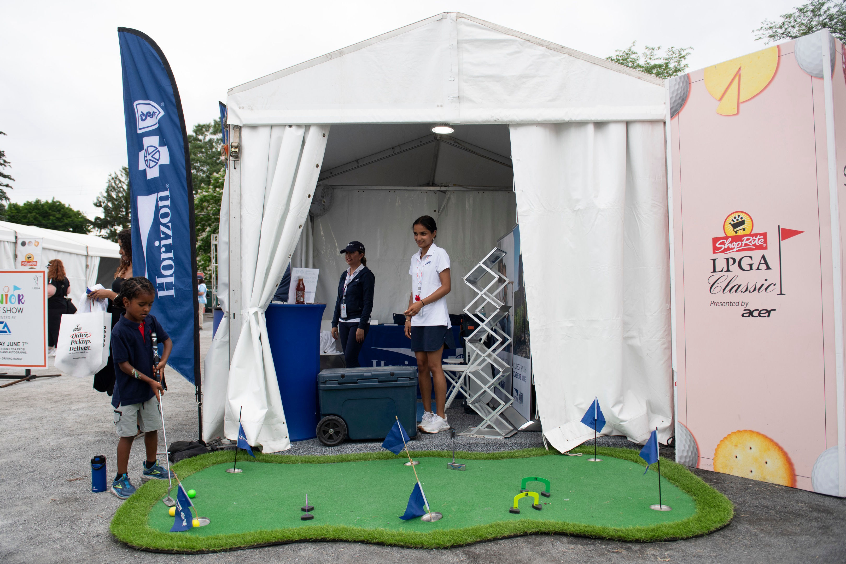 There are two hubs at the ShopRite LPGA to showcase your brand and products. The first, located at the main entrance, is the Expo Village – which welcomes fans as their introduction to their day upon arrival to the golf course. Another hub, is the “We Are Here” family fan zone near the 11th green & 12th tee box which blends featured spectator viewing locations and sampling.